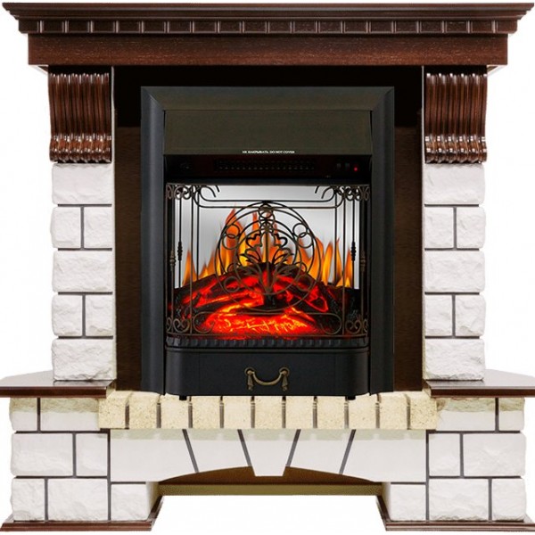Каминокомплект Pierre Luxe - Темный дуб / Белый с очагом Majestic FX M Black