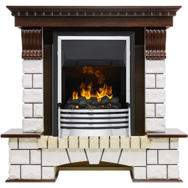 Каминокомплект Pierre Luxe - Темный дуб / Белый (Высота 1020мм) с очагом Flagstaff