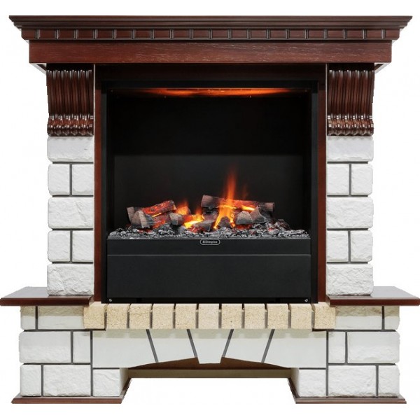 Каминокомплект Pierre Luxe - Темный дуб / Белый (Высота 1040мм) с очагом Albany