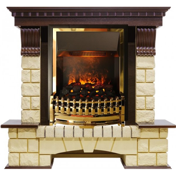 Каминокомплект Pierre Luxe - Темный дуб / Шампань (Высота 1050мм) с очагом Atherton