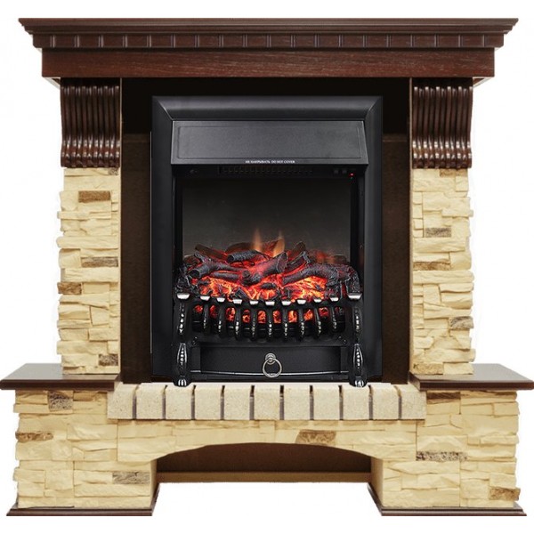 Каминокомплект Pierre Luxe - Темный дуб / Сланец с очагом Fobos FX Black