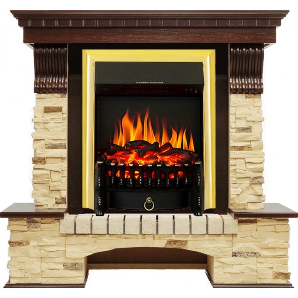 Каминокомплект Pierre Luxe - Темный дуб / Сланец с очагом Fobos FX Brass