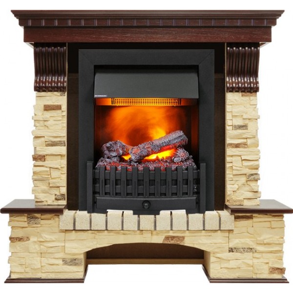 Каминокомплект Pierre Luxe - Темный дуб / Сланец (Высота 1005мм) с очагом Danville Black FB2