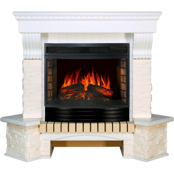 Каминокомплект Pierre Luxe угловой - Белый / Сланец белый с очагом Dioramic 25 LED FX