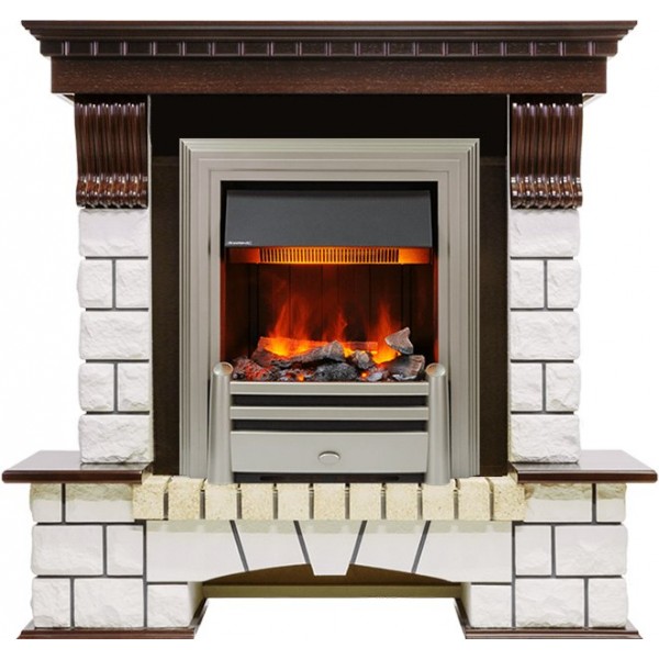 Каминокомплект Pierre Luxe угловой - Темный дуб / Белый (Высота 1020мм) с очагом Chesford