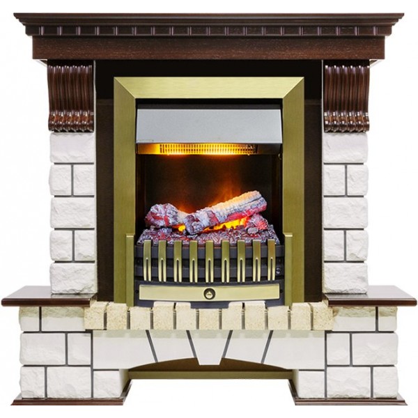 Каминокомплект Pierre Luxe угловой - Темный дуб / Белый (Высота 1020мм) с очагом Danville Antique Brass FB2