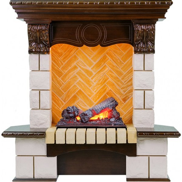 Каминокомплект Pierre Luxe угловой - Темный дуб / Шампань (Высота 975мм) с очагом Cassette 400 NH