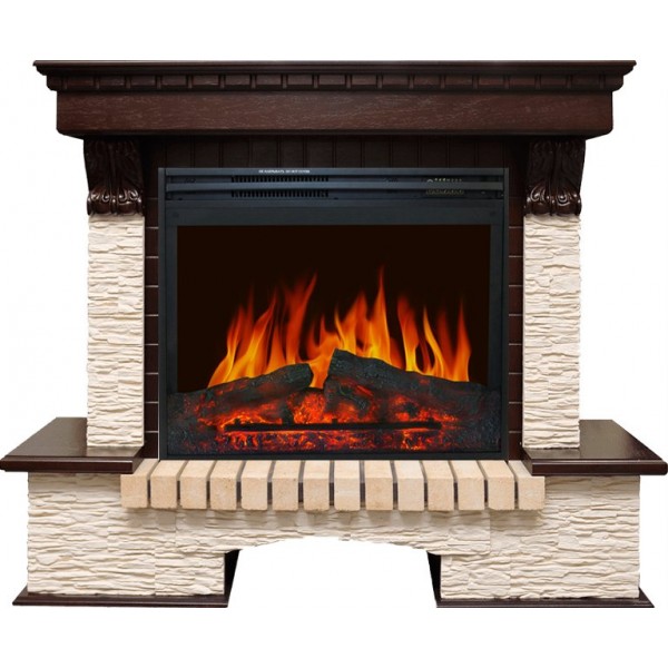 Каминокомплект Pierre Luxe угловой - Темный дуб / Сланец бежевый с очагом Jupiter FX New