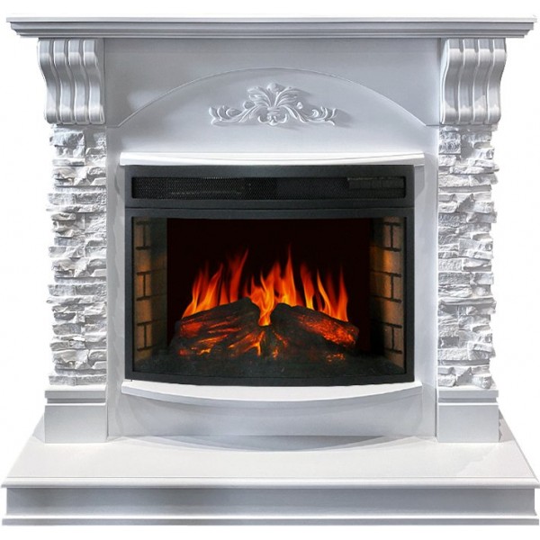Каминокомплект Prague - Белый /Сланец белый с очагом Dioramic 25 LED FX
