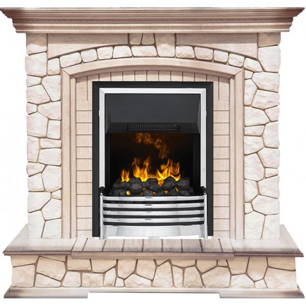 Каминокомплект Preston - Белый/Слоновая кость с патиной с очагом Flagstaff