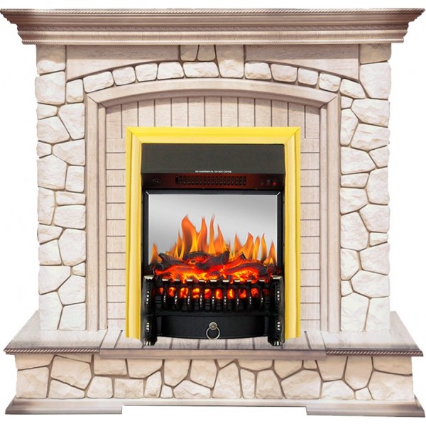 Каминокомплект Preston - Белый/Слоновая кость с патиной с очагом Fobos FX M Brass