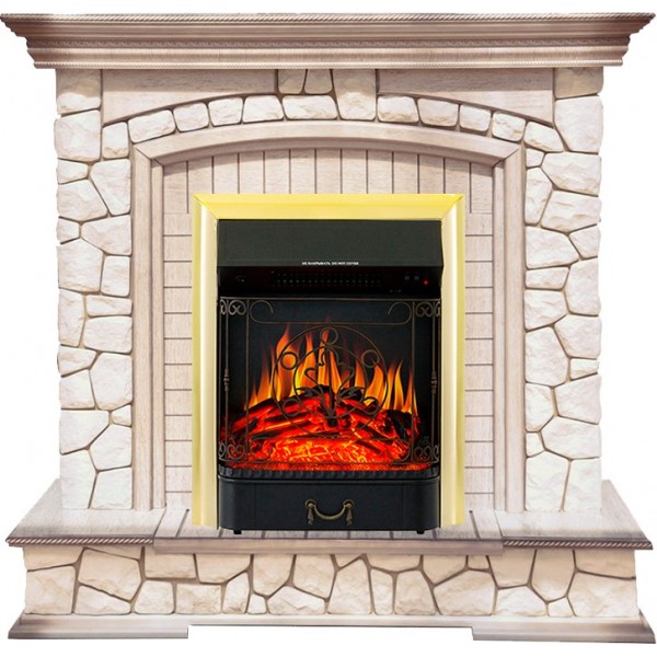 Каминокомплект Preston - Белый/Слоновая кость с патиной с очагом Majestic FX Brass