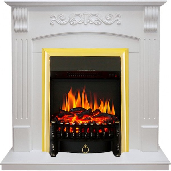 Каминокомплект Sorrento угловой - Белый дуб с очагом Fobos FX Brass