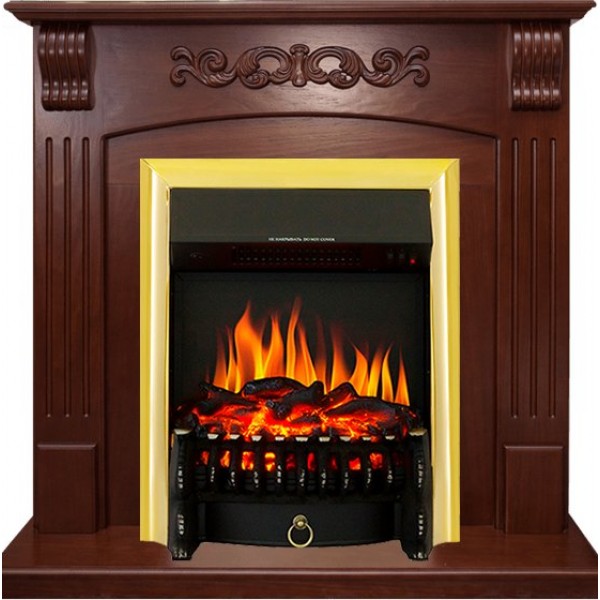 Каминокомплект Sorrento угловой - Орех с очагом Fobos FX Brass