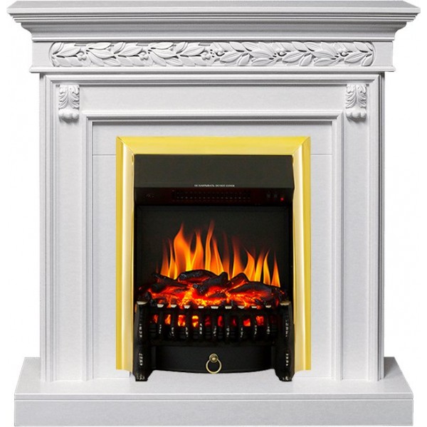 Каминокомплект Valletta - Белый (Ширина 1040 мм) с очагом Fobos FX Brass