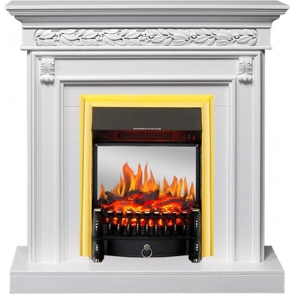Каминокомплект Valletta - Белый (Ширина 1040 мм) с очагом Fobos FX M Brass