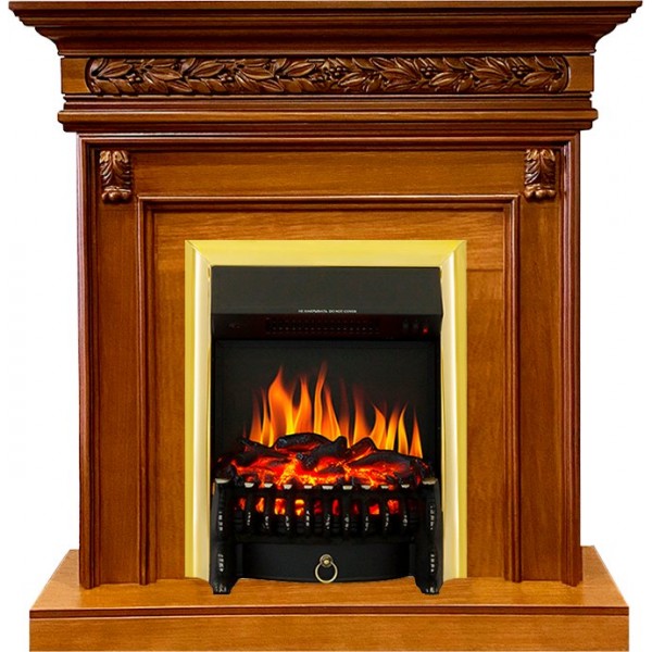 Каминокомплект Valletta - Орех с очагом Fobos FX Brass