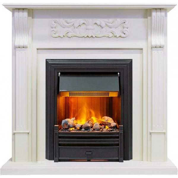 Каминокомплект Venice - Фактурный белый с очагом Brookline Black