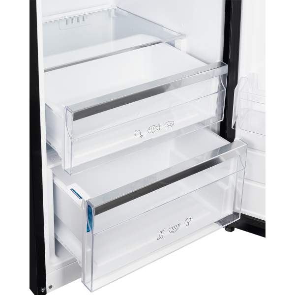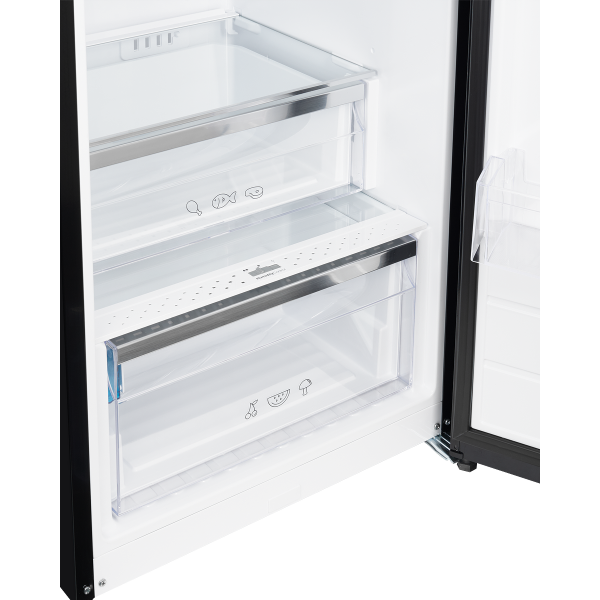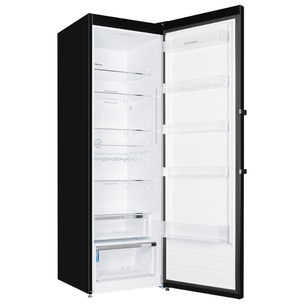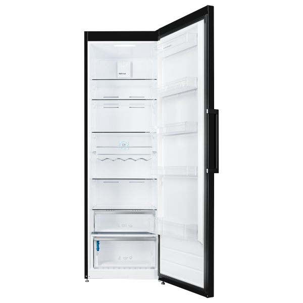 Достоинства отдельно стоящего однодверного холодильника NRS 186 BK черного цвета с фурнитурой из нержавеющей стали заметны сразу. При создании интерьера кухни в стиле High-Tech, рассмотрите данную модель. Помимо шикарного внешнего вида, стоит оценить и богатый функционал агрегата. Производитель наделил его множеством действительно важных и полезных характеристик: