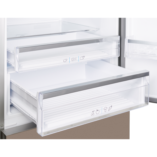 Стильный интерьер кухонного помещения Hi-Tech великолепно дополнит двухкамерный холодильник NRV 192 BRG цвета кофе стекло. Его элегантный дизайн прекрасно дополняется серьезными техническими свойствами: