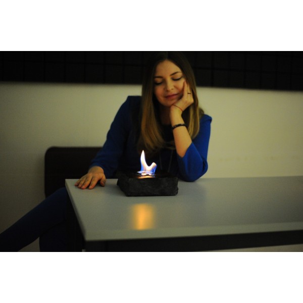 Настольный биокамин RocK от ZeFire – это современный мини-очаг, вызывающий самые теплые чувства и воспоминания о дарителе. Его пламя горит без дров и золы, не оставляет дыма и копоти. В фирменной упаковке из плотного картона помещается сам биокамин и миниатюрный набор аксессуаров: спички и биотопливо. С ними огонь легко развести когда и где угодно.