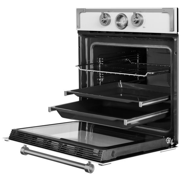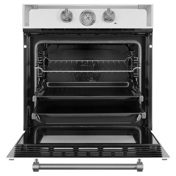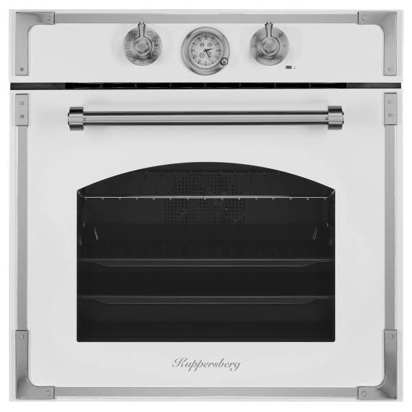 Классические черты интерьера будут просматриваться без тени сомнений, с встраиваемым духовым шкафом RC 6911 W Silver белого цвета с серебряной металлической фурнитурой.
