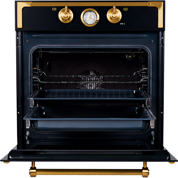 Уютную обстановку кухни классического формата невозможно считать совершенной без встраиваемого духового шкафа RC 699 ANT Bronze. Этот стильный агрегат антрацитового цвета с оригинальной бронзовой фурнитурой прекрасно дополнит интерьер и не займет много места.