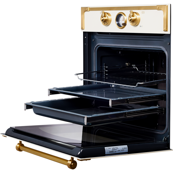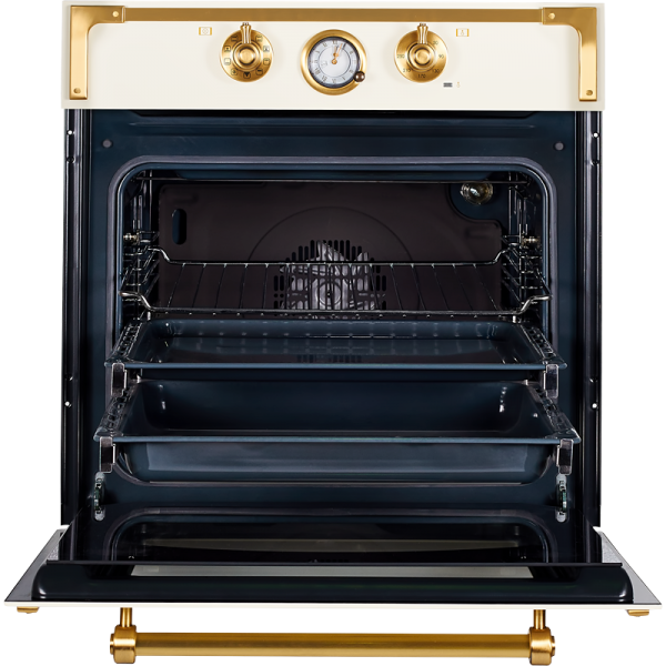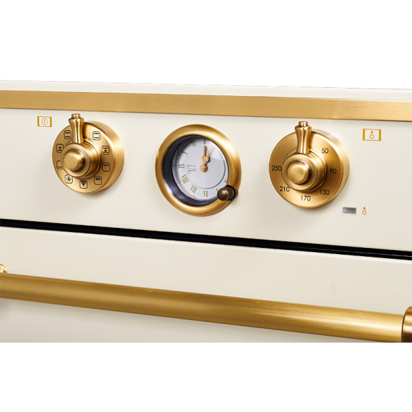 Электрический духовой шкаф RC 699 C Bronze бежевого оттенка с металлической фурнитурой бронзового цвета – стильное и важное дополнение стандартной кухни классического типа. Оцените и широкий ассортимент функций этого достойного устройства: