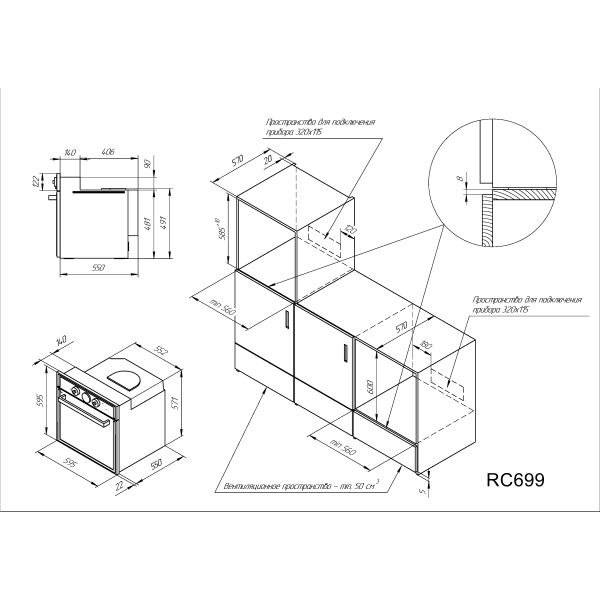 Размер ниши для встраивания в колонну (ВхШхГ), мм