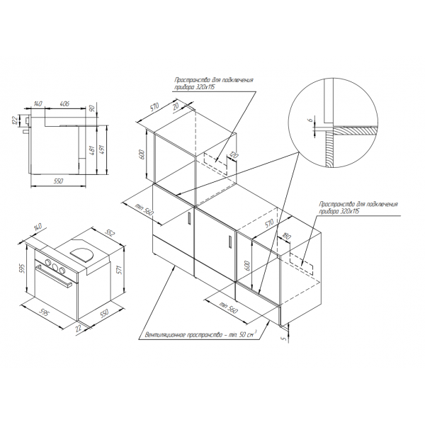 Размер ниши для встраивания в колонну (ВхШхГ), мм