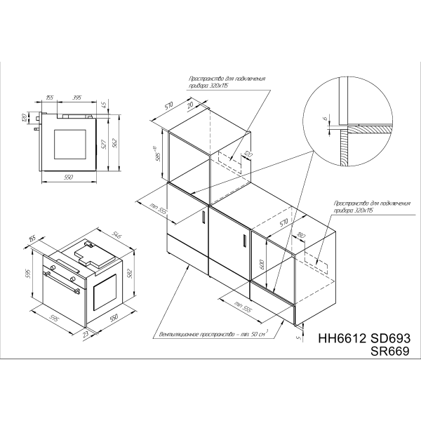Размер ниши для встраивания в колонну (ВхШхГ), мм