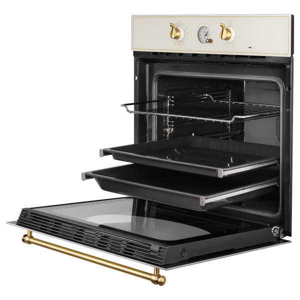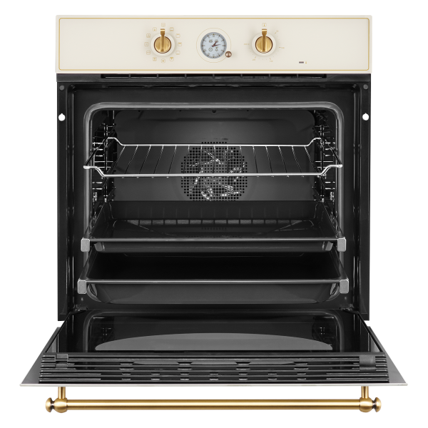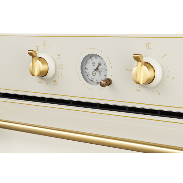 Стильный формат классической кухни будет считаться незавершенным, если его не дополнить элегантным электрическим встраиваемым духовым шкафом SR 6911 C Bronze бежевого оттенка с бронзовыми вставками. Этот эргономичный прибор оснащен такими полезными качествами: