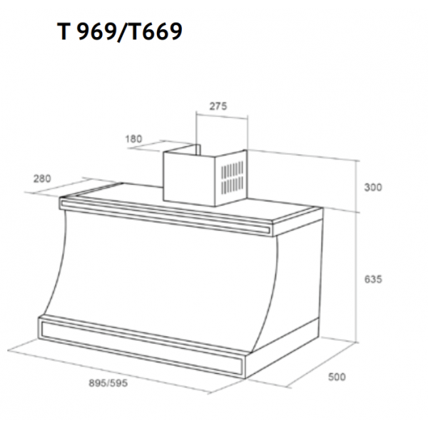 Бежевая кухонная вытяжка T 669 C Bronze с бронзовой фурнитурой не только украсит интерьер в стиле Classic, но и в два счета избавит помещение от дымовой завесы, вредных и неприятных запахов, гари и сажи.