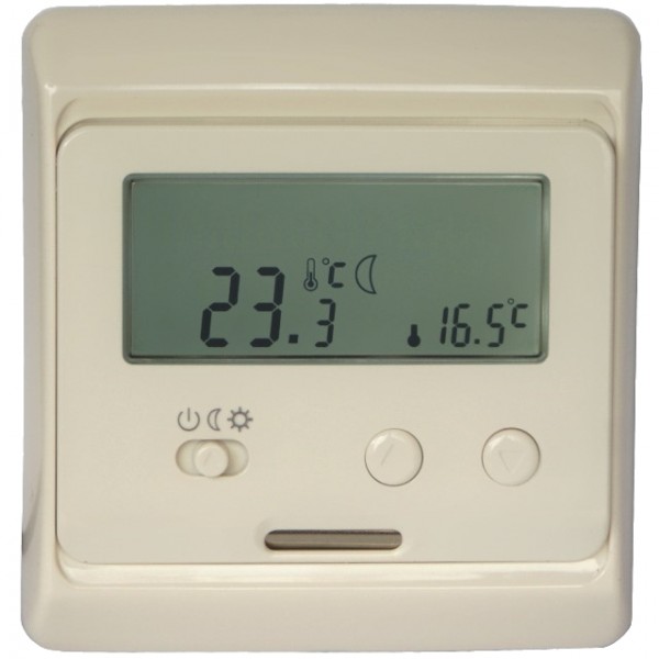 Терморегулятор E 31.116 двухрежимный с ЖК дисплеем и двумя датчиками применяется для автоматического поддержания температуры теплого пола в диапазоне температуры от +5 °С + 55 °С.