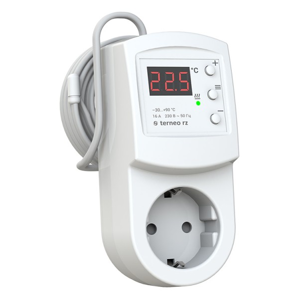 Терморегулятор terneo rz 2м оснащен выносным датчиком температуры воздуха. Контролируйте работу электрообогревателей, инфракрасных панелей, а также систем охлаждения в диапазоне температур от 0 до 30 °С.