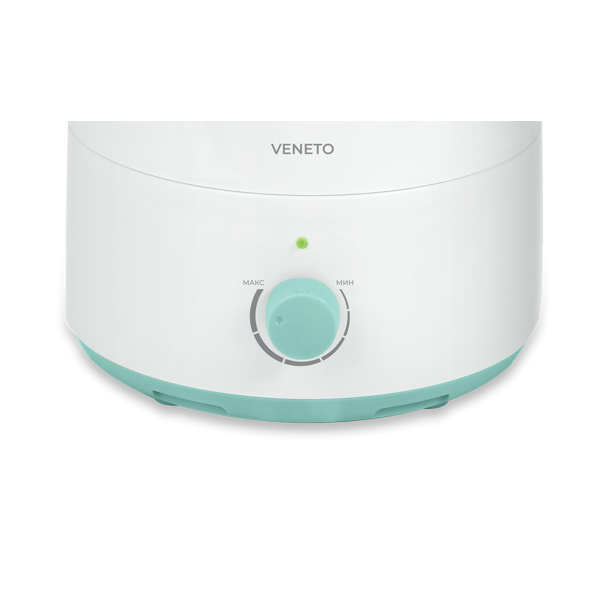 Увлажнитель VENETO имеет резервуар для воды объемом 2,5 литра. Интенсивность увлажнения воздуха достигает 300 мл/ч. До 8 часов непрерывной работы на максимальной скорости выхода пара без долива воды в резервуар.